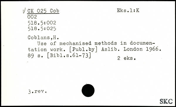 UDK: 025 Cob, 002, 518.5:002, 518.5:025