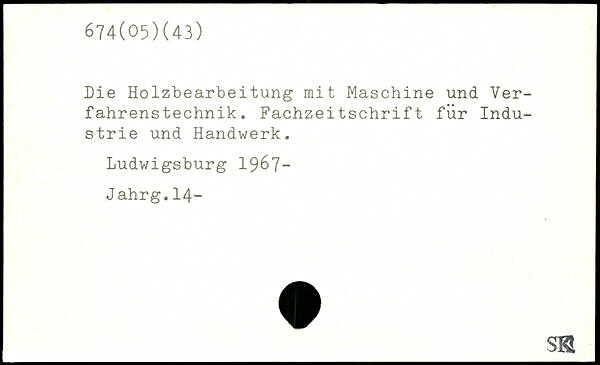 Die Holzbearbeitung mit Maschine und Verfahrenstechnik. Fachzeitschrift für Industrie und Handwerk. Ludwigsburg 1967- J ahrg.14- _SB