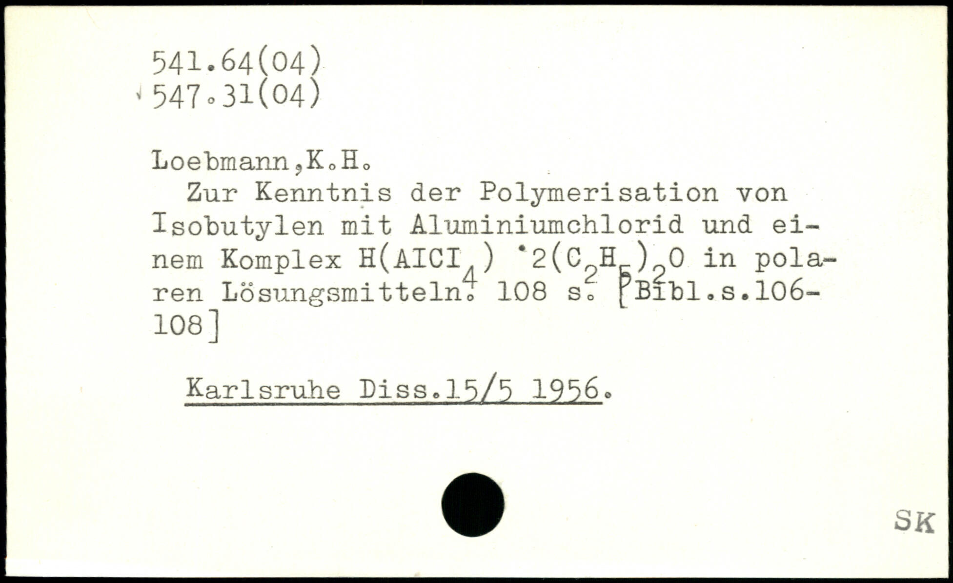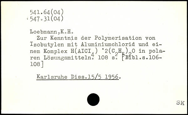 Zur Kenntnis der Polymerisation von Isobutylen mit Aluminiumchlorid und einem Komplex H(AIGI ) .2(C^H )^0 in polaren Lösungsmittelno