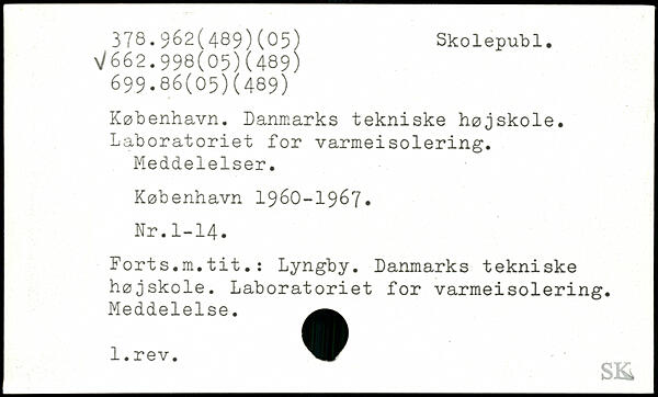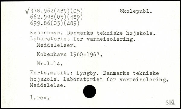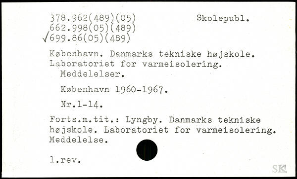 København. Danmarks tekniske højskole. Laboratoriet for varmeisolering. Meddelelser.
