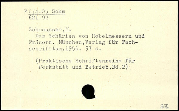 Schnausser,M. I Das Schärfen von Hobelmessern und Fräsern.