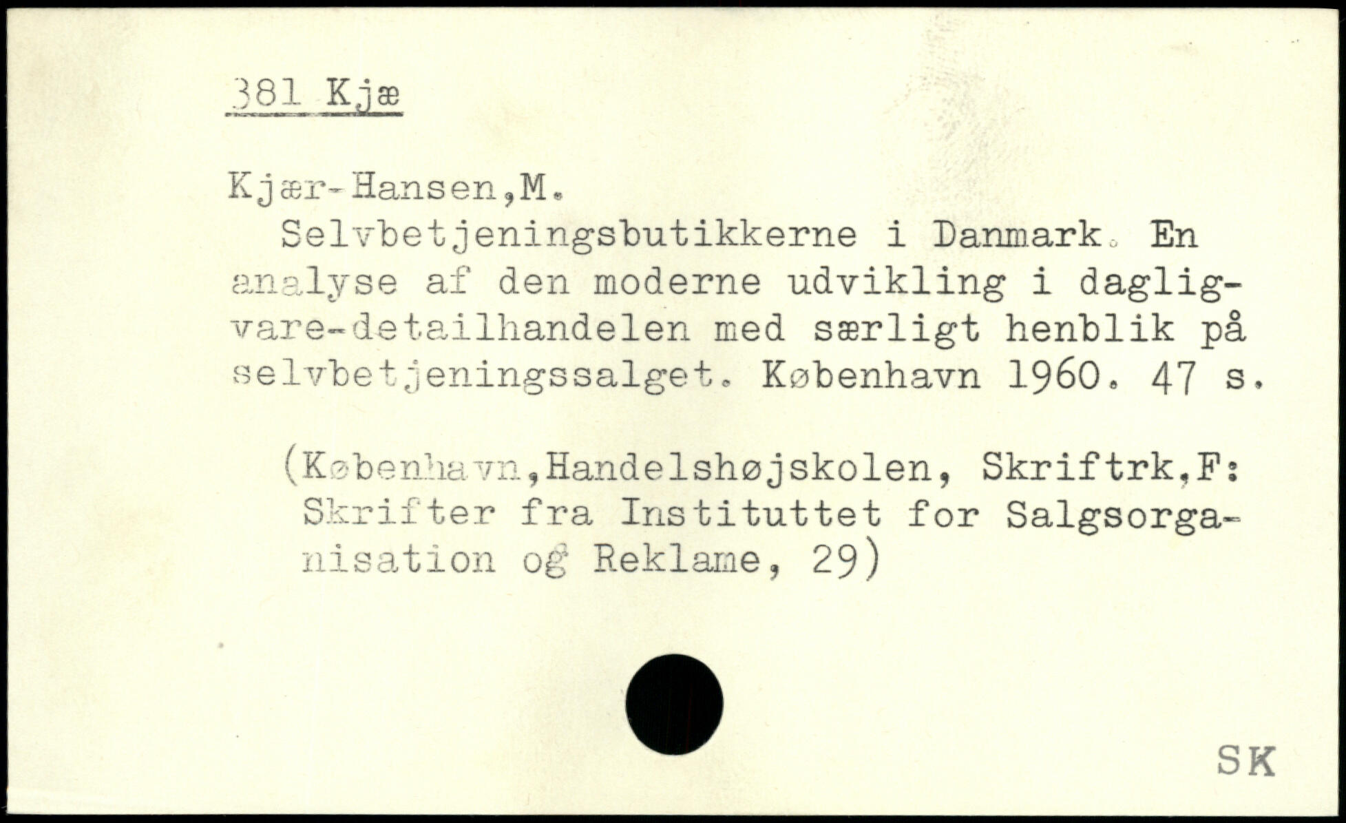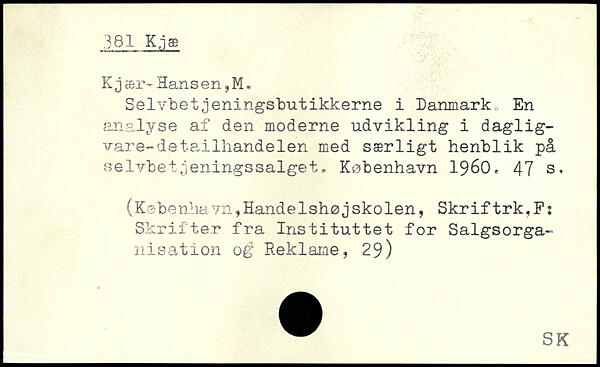 Selvbetjeningsbutikkerne i Danmark En analyse af den moderne udvikling i daglig-vare-detailhandelen med særligt henblik på selvbetjeningssalget.