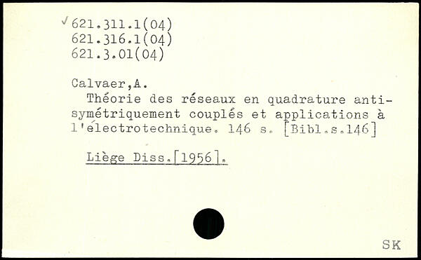 Théorie des réseaux en quadrature anti-symétriquement couples et applications à 1’electrotechnique. I