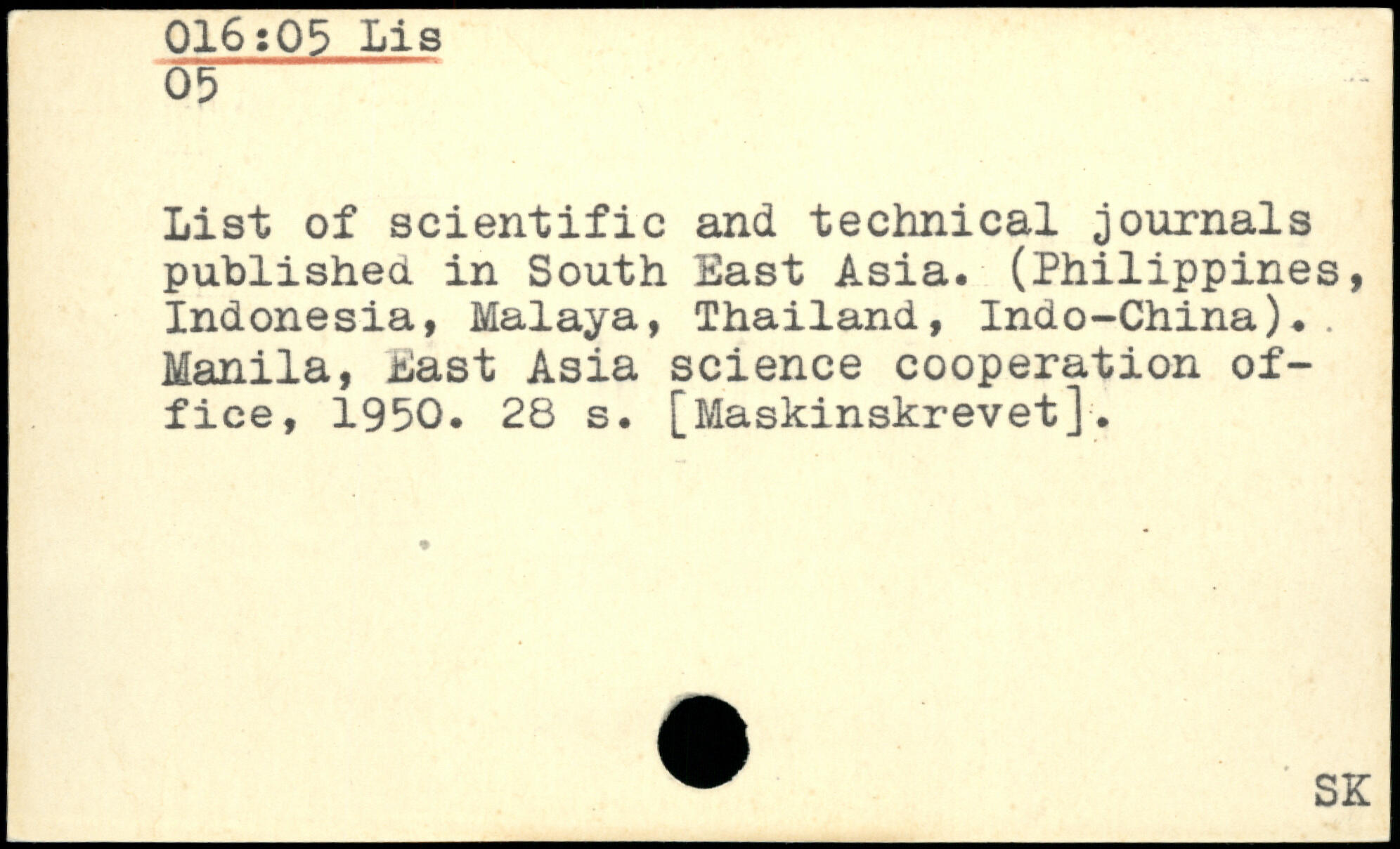List of scientific and technical journals published, in South East Asia. (Philippines, Indonesia, Malaya, Thailand, Indo-China).. Manila, East Asia science cooperation office, 1950.