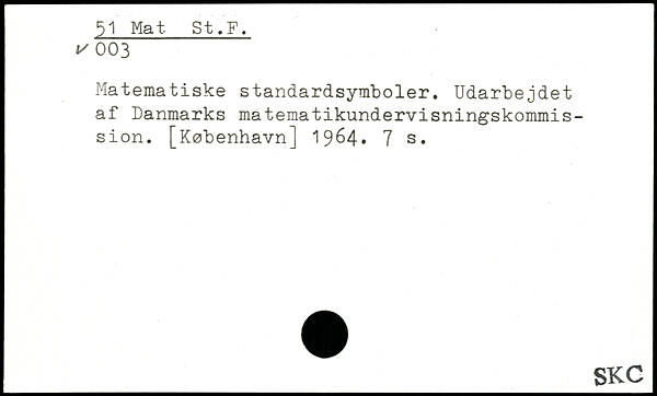 Matematiske standardsymboler. Udarbejdet af Danmarks matematikundervisningskommission. [København] 19^4