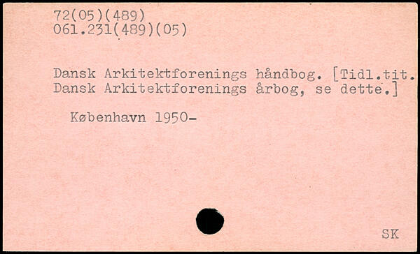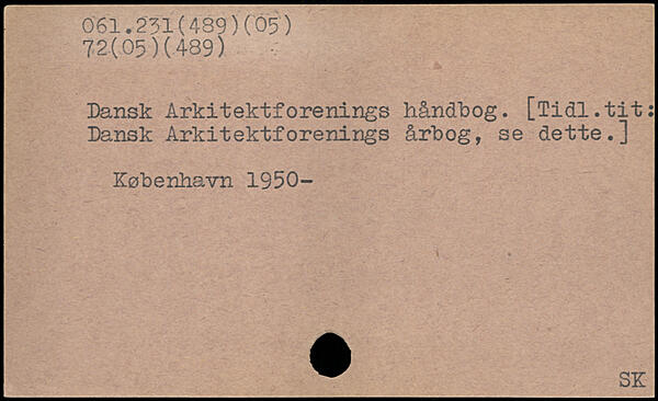 Dansk Arkitektforenings håndbog. [fidl.tit. Dansk Arkitektforenings årbog, se dette,]