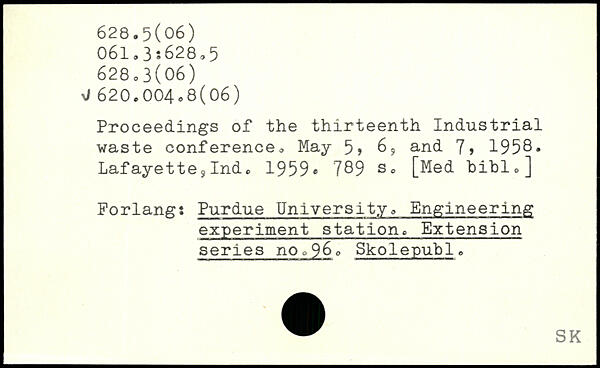 Proceedings of the thirteenth Industrial waste conference. May 5> 6, and 7, 1958, Lafayette,Ind. 1959®