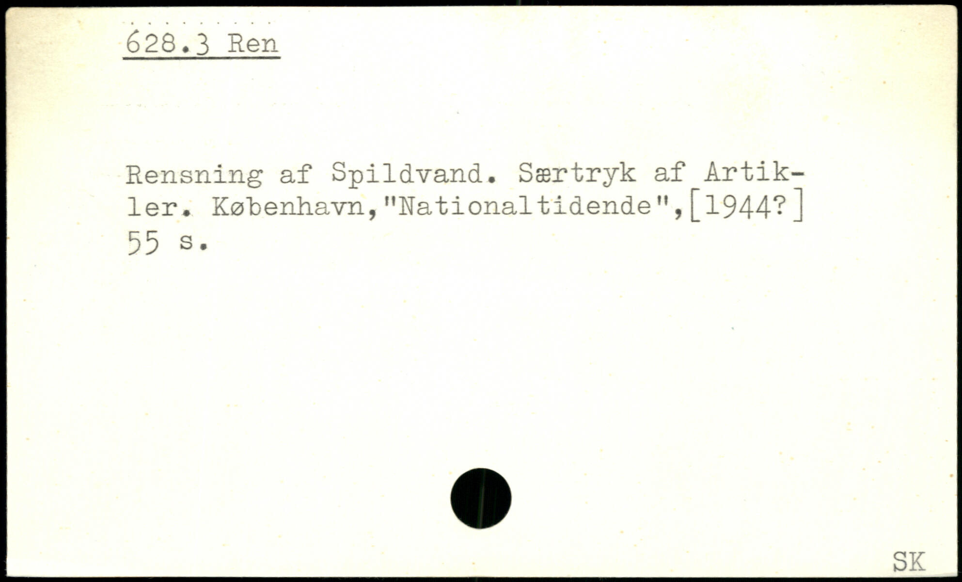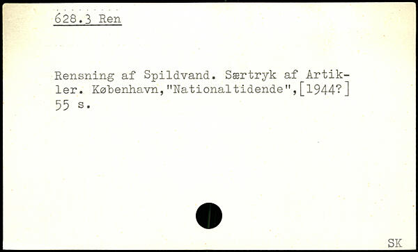 Rensning af Spildvand. Særtryk af Artikler. København, "Nationaltidende", [1944.? ]