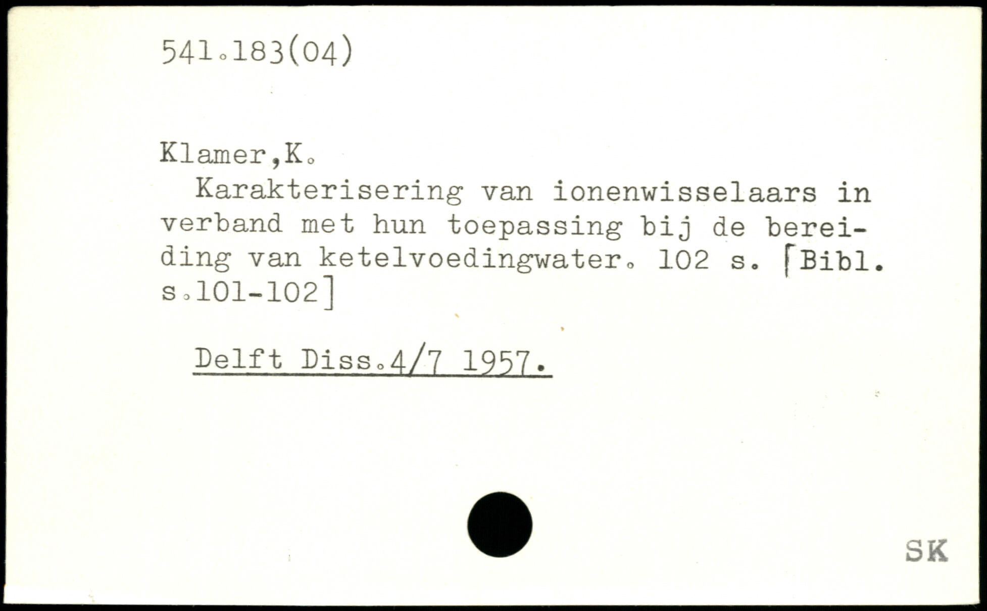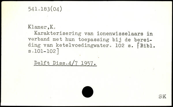 Karakterisering van ionenwisselaars in verband met hun toepassing bij de berei-ding van ketelvoedingwater
