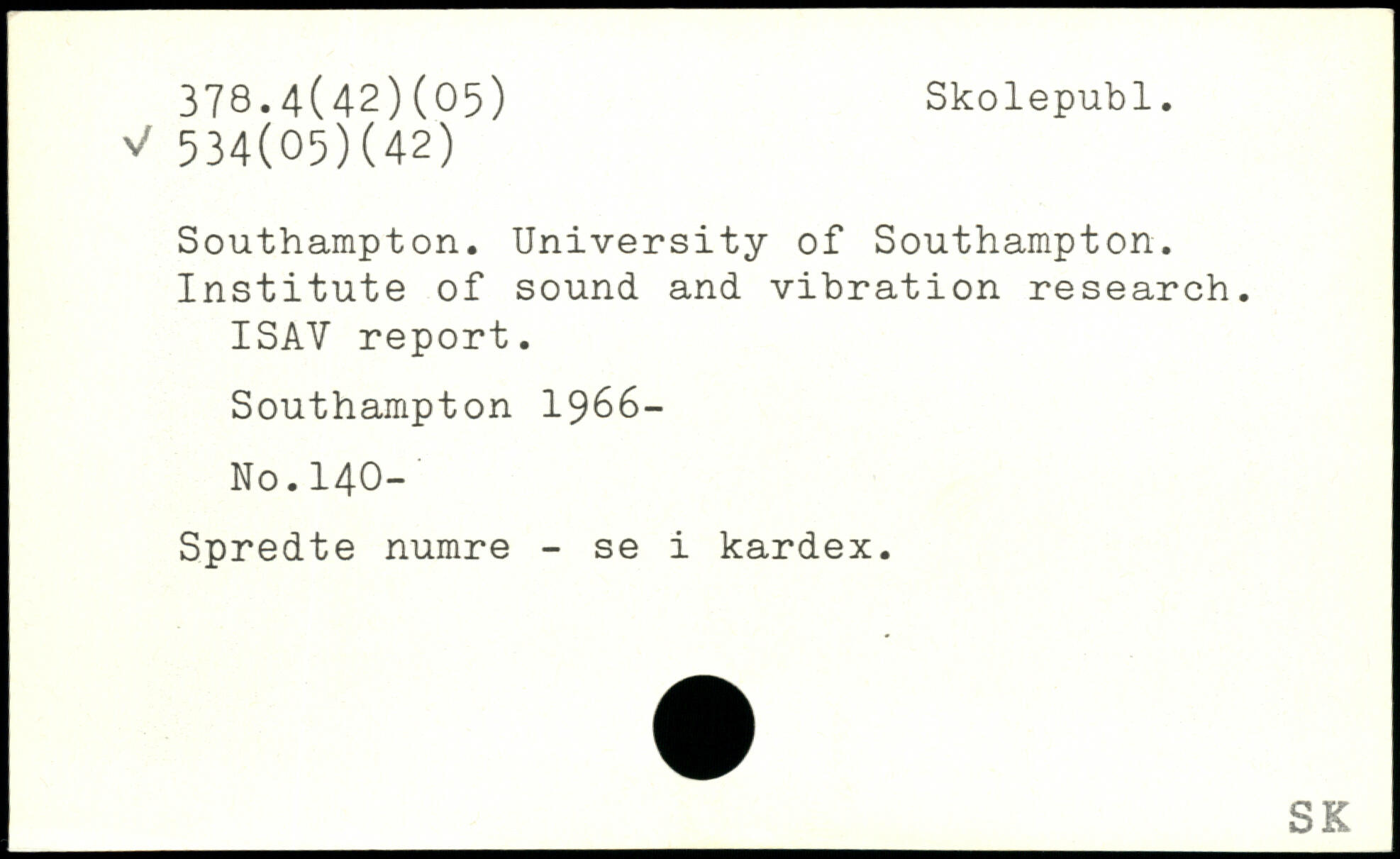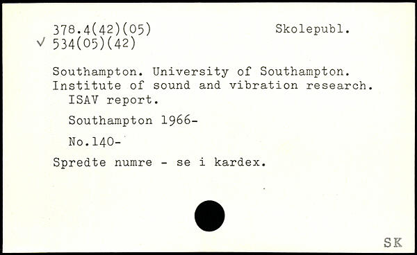 Southampton. University of Southampton. Institute of sound and vibration research. ISAY report. Southampton 1966- No. 140- Spredte numre - se i kardex.