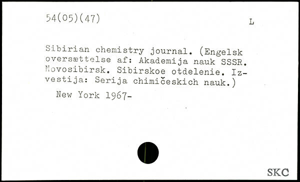 Sibirian chemistry journal. (Engelsk oversættelse af: Akademija nauk SSSR. Novosibirsk. Sibirskoe otdelenie. Iz-vestija: Serija chimiceskich nauk.)