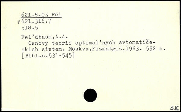 Fel’dbaum,A.A. Osnovy teorii optimal’nych avtomatice-skich sistem.