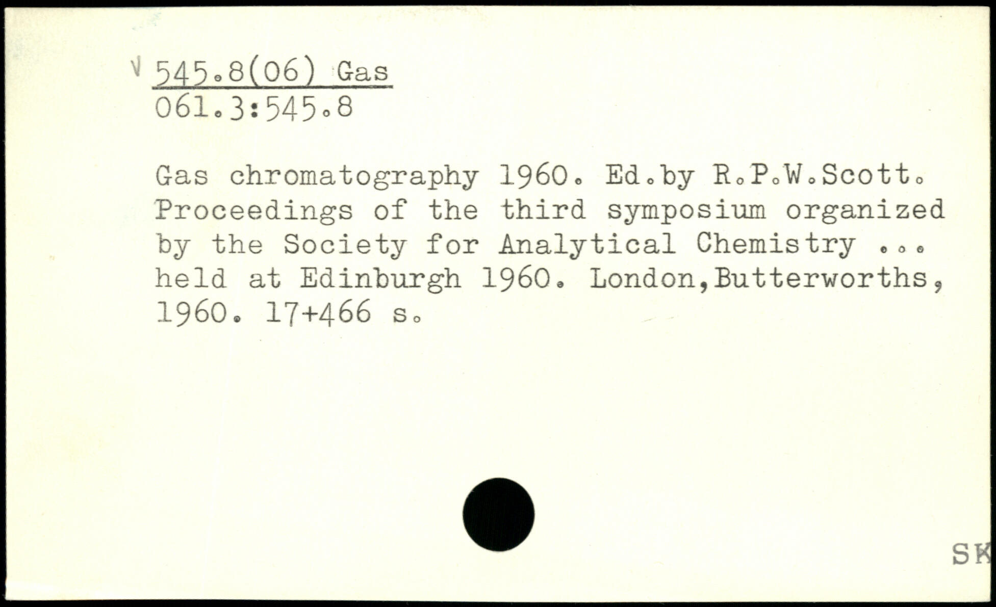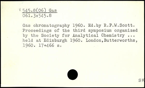 Gas chromatography 1960, Edohy RoPoWoScotto Proceedings of the third symposium organized hy the Society for Analytical Chemistry eoe held at Edinburgh 1960,
