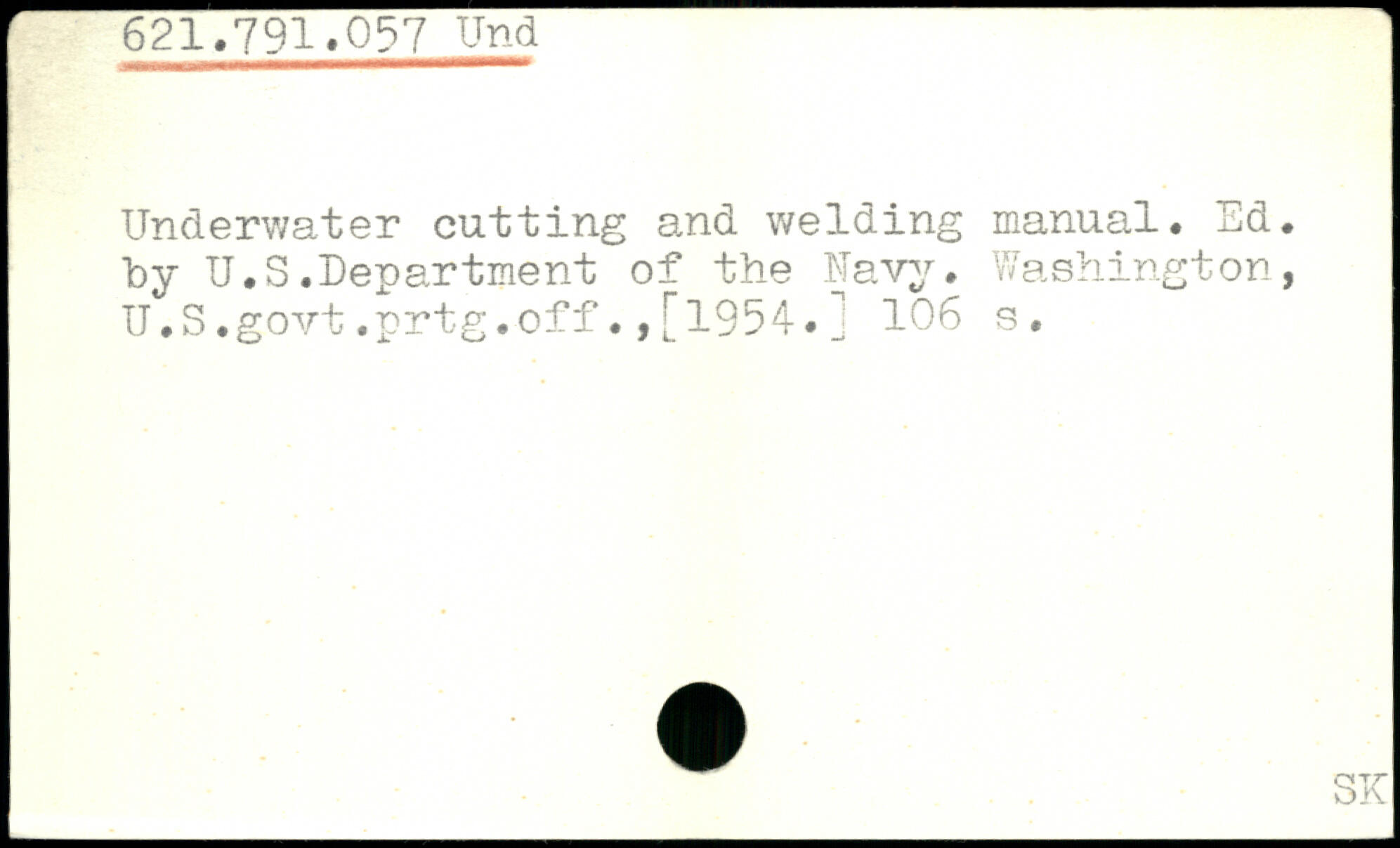 Underwater cutting and welding manual. Ed. by U.S.Department of the Navy. Washington, U.S.govt.prtg.off.,[1954.]