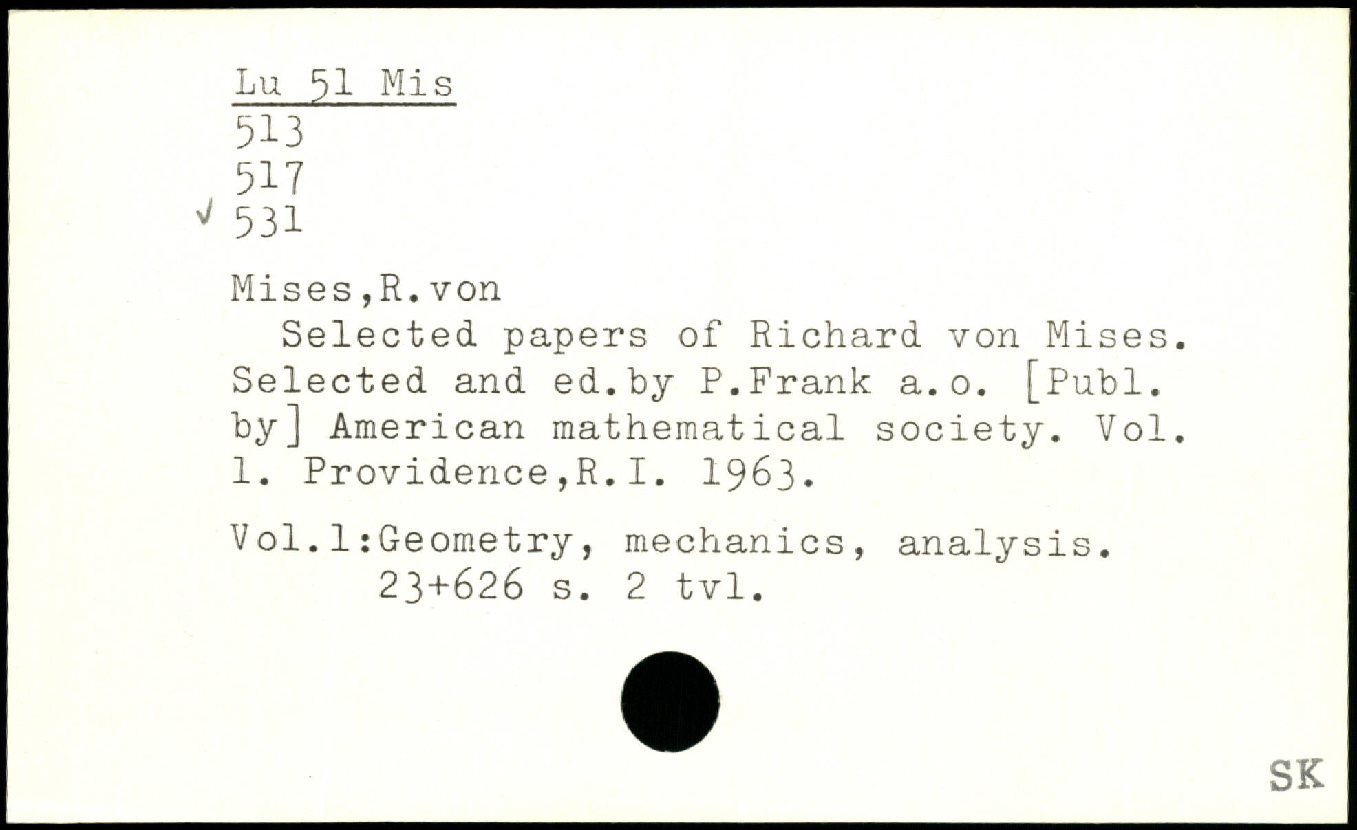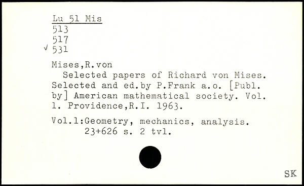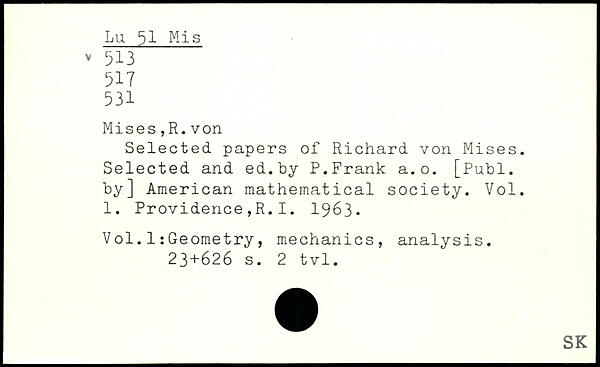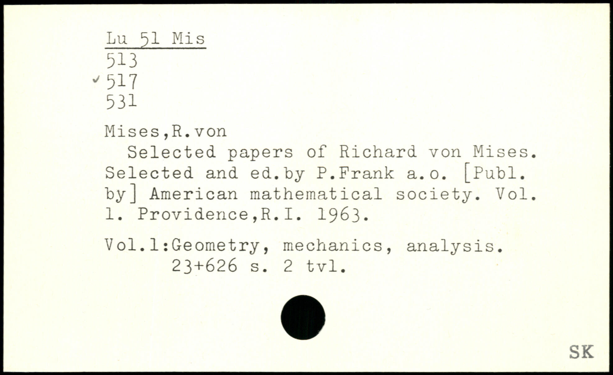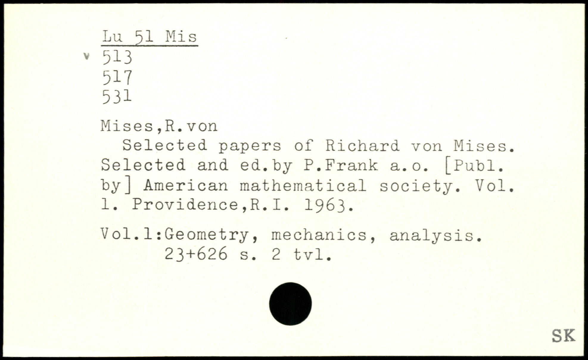 Selected papers of Richard von Mises. Selected and ed.by P.Frank a.o.