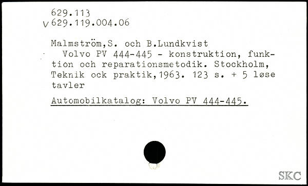 Malmström,S. och B.Lundkvist i Volvo PV 444-445 - konstruktion, funk tion och reparationsmetodik.