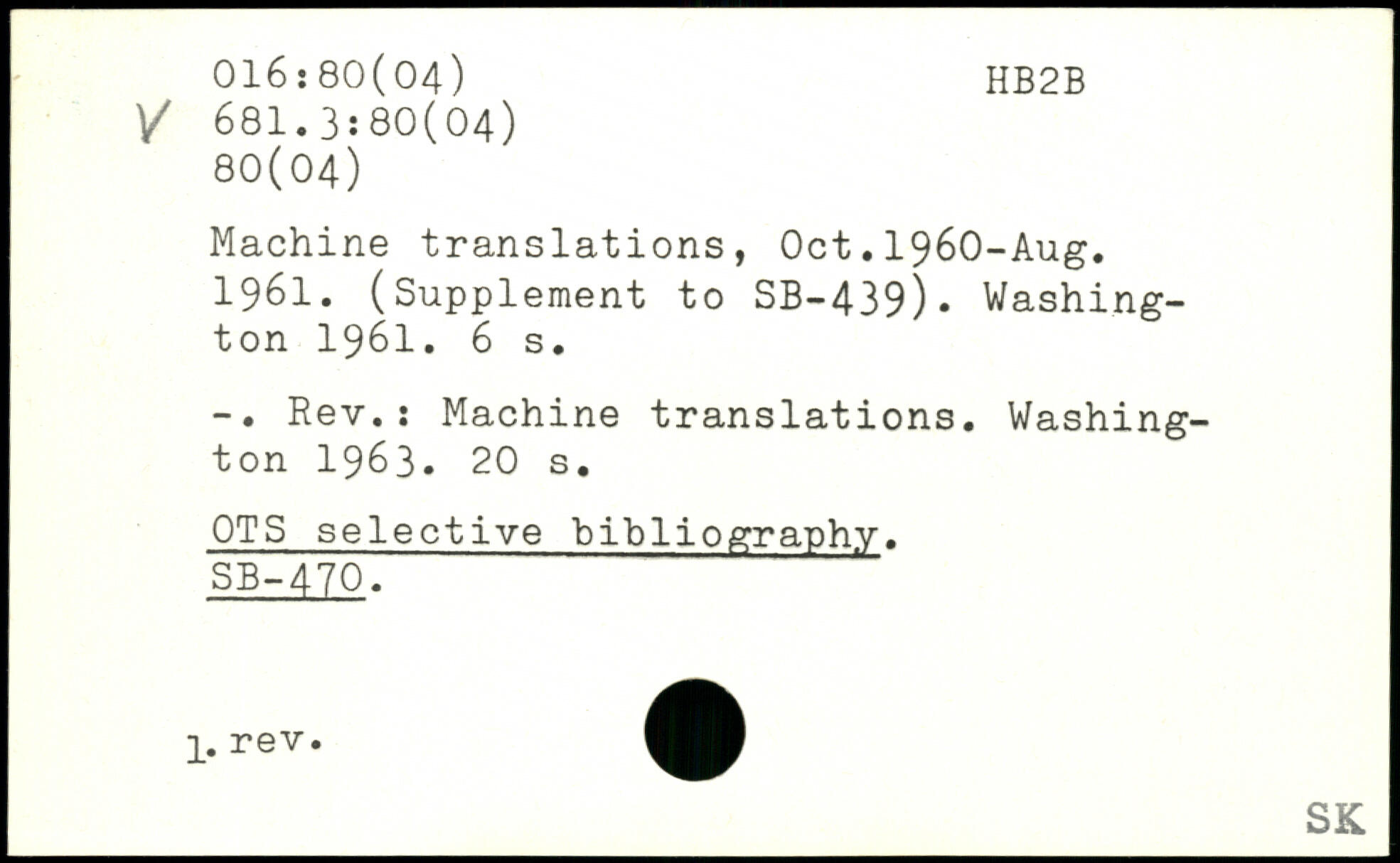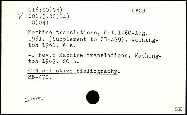 Machine translations, Oct.1960-Aug. 1961. (Supplement to SB-439).