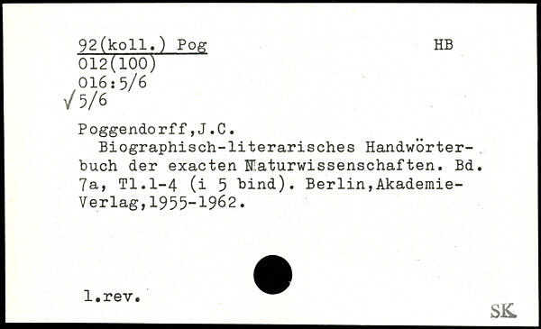 Biographisch-literarisches Handwörterbuch der exacten Hlaturwissenschaf ten. Bd. 7a, TI.1-4 (i 5 bind).