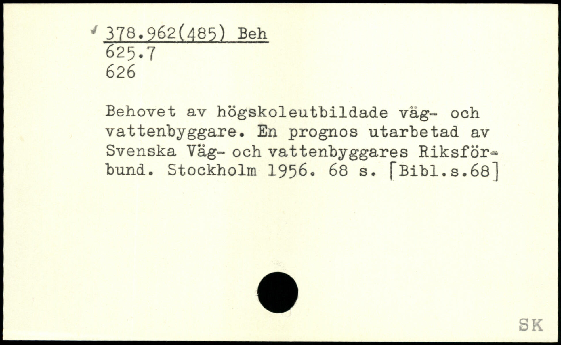 Behovet av högskoleutbildade väg- och vattenbyggare. En prognos utarbetad av Svenska Väg- och vattenbyggares Riksförbund.