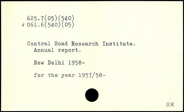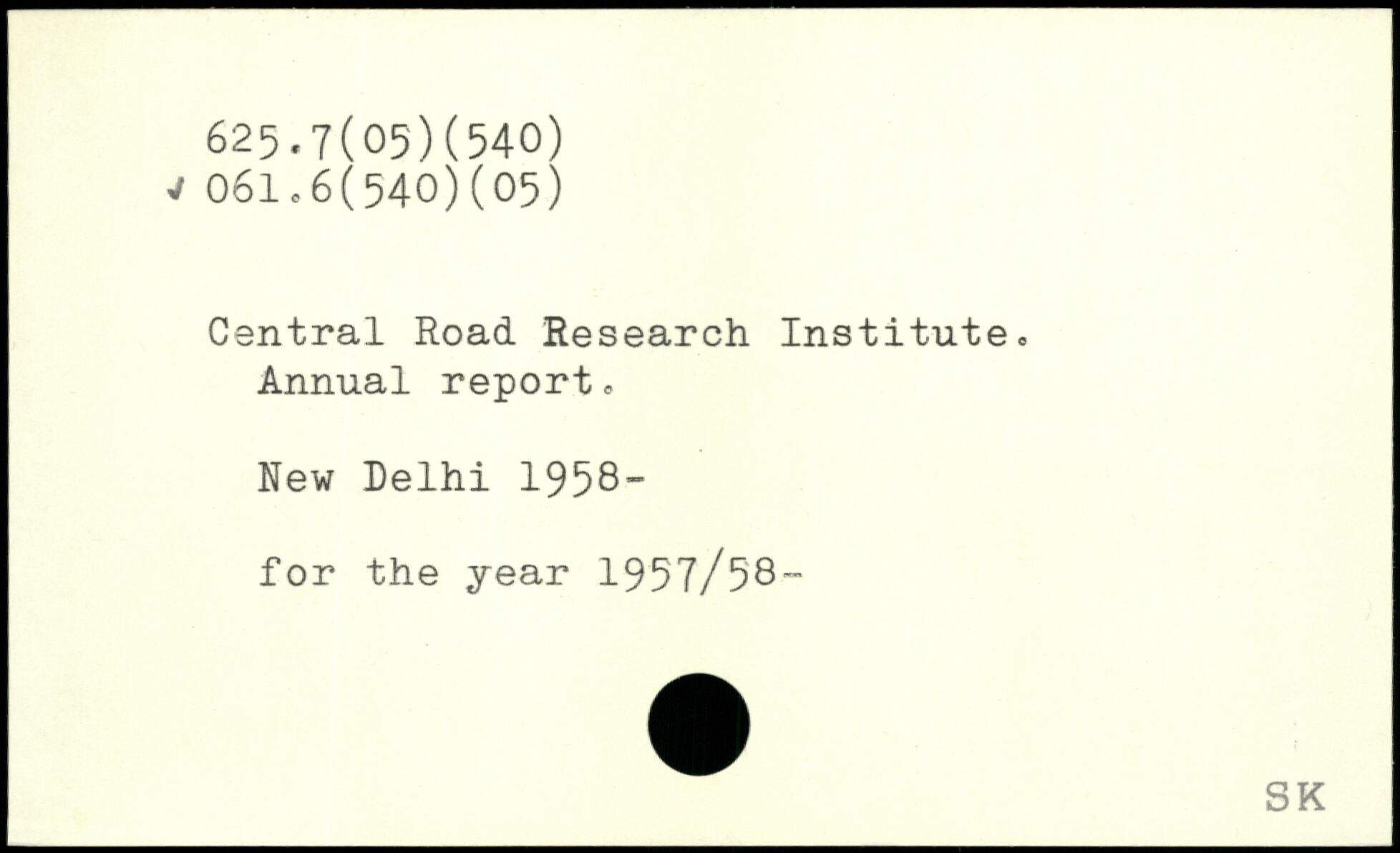 Central Road Research Institute. Annual report. New Delhi 1958- for the year 1957/58-