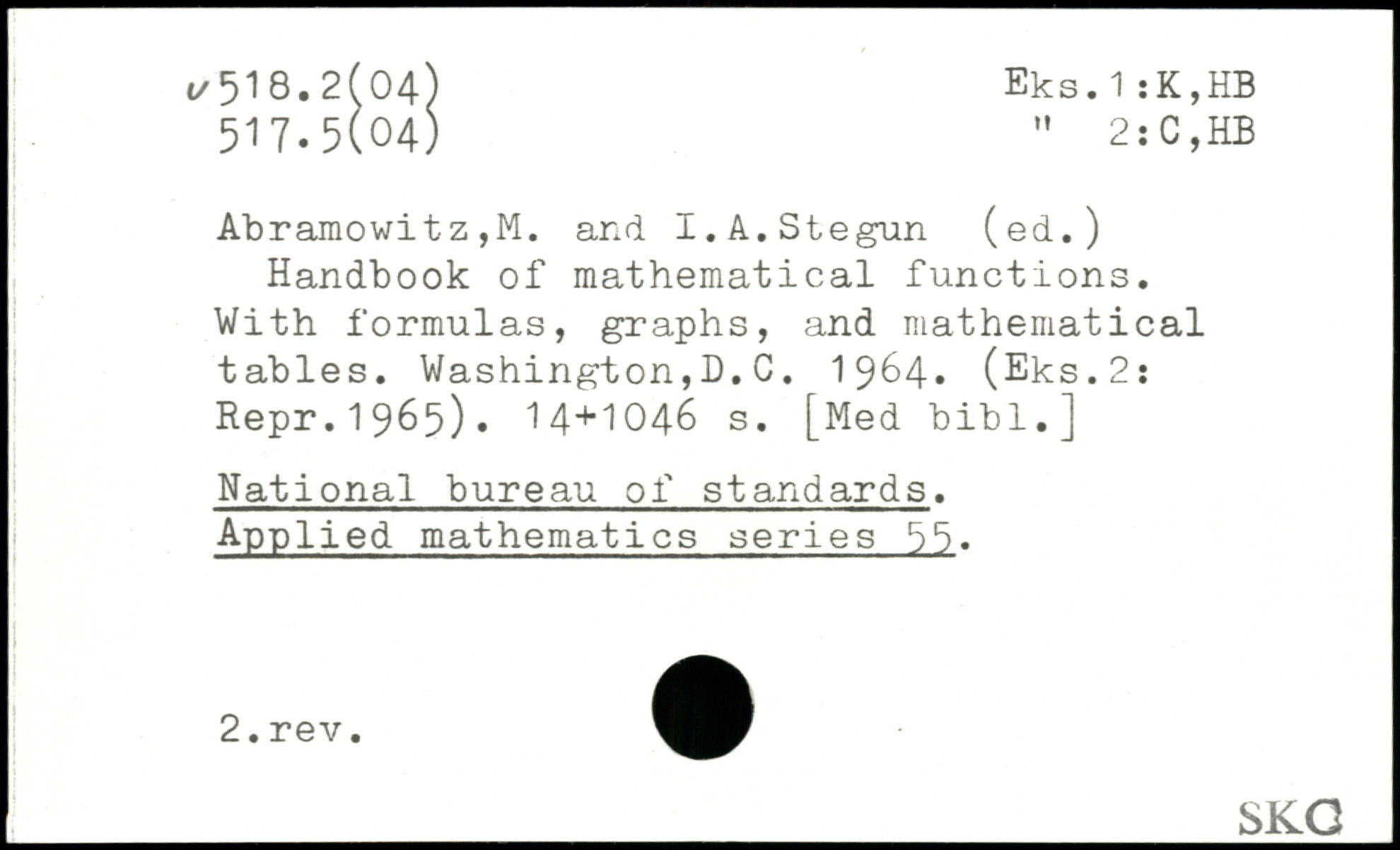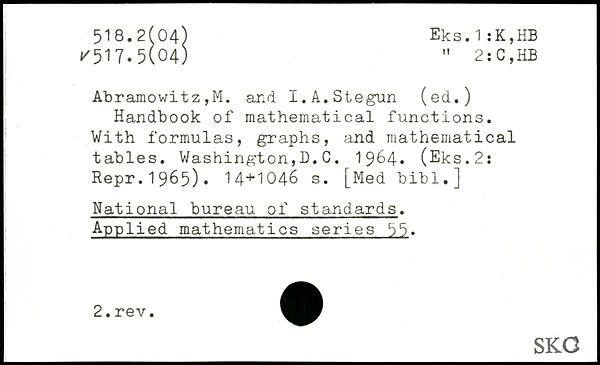 Handbook of mathematical functions. With formulas, graphs, and mathematical tables. Washington,D.C. 1964. (Eks.2: Repr.1965).