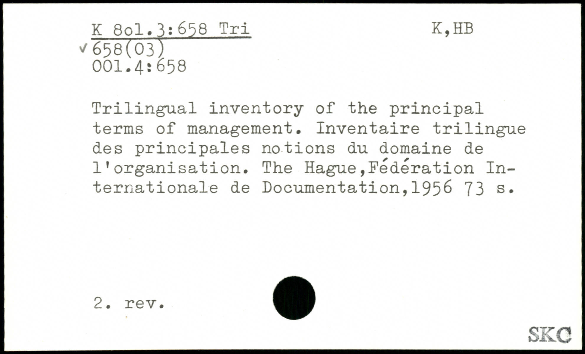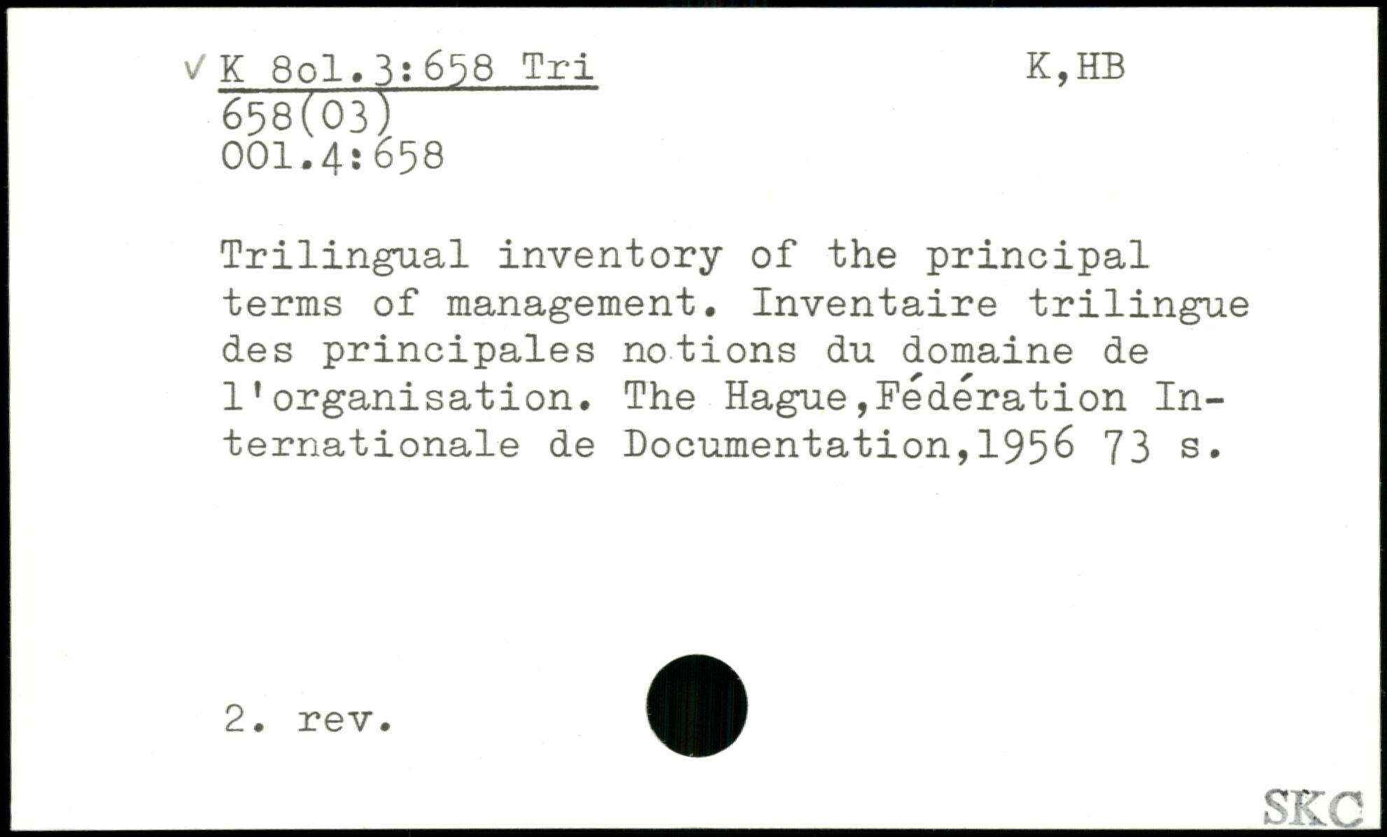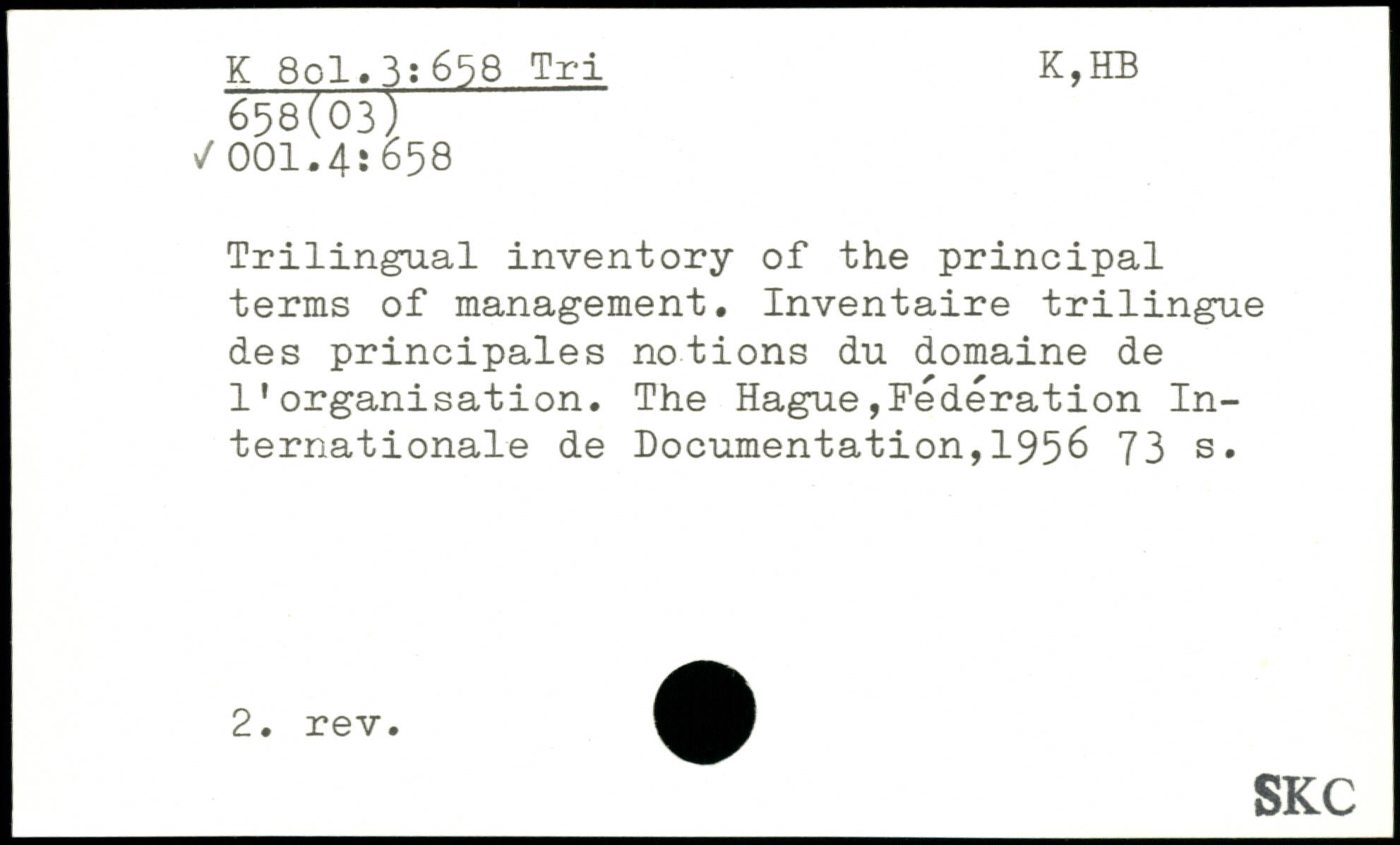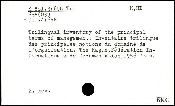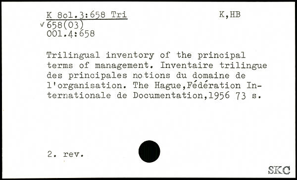 Trilingual inventory of the principal terms of management. Inventaire trilingue des principales notions du domaine de l’organisation.