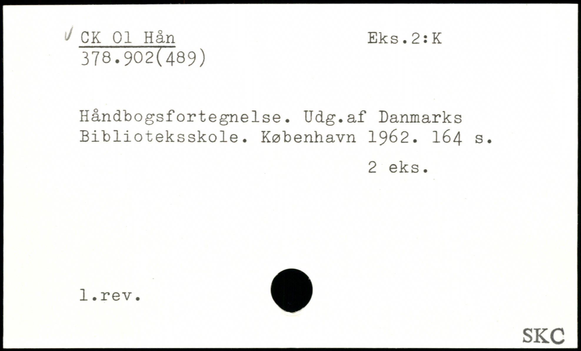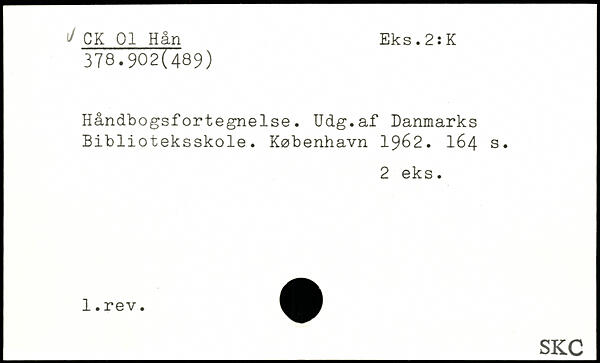 Håndbogsfortegnelse. Udg.af Danmarks Biblioteksskole.