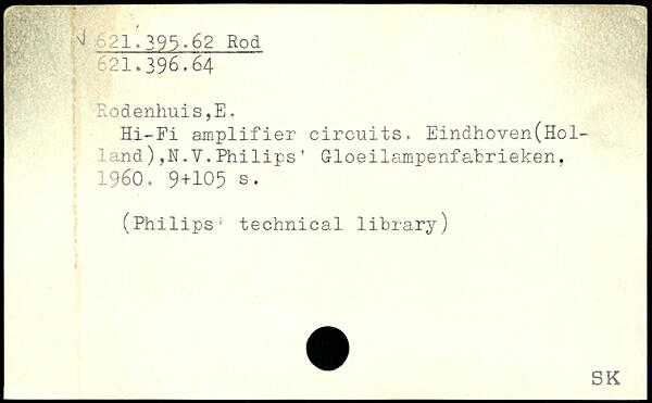 Hi-Fi amplifier circuits, Eindhoven(Hol-land),N.V.Philips’ Gloeil ampenfabrieken, J 1960.