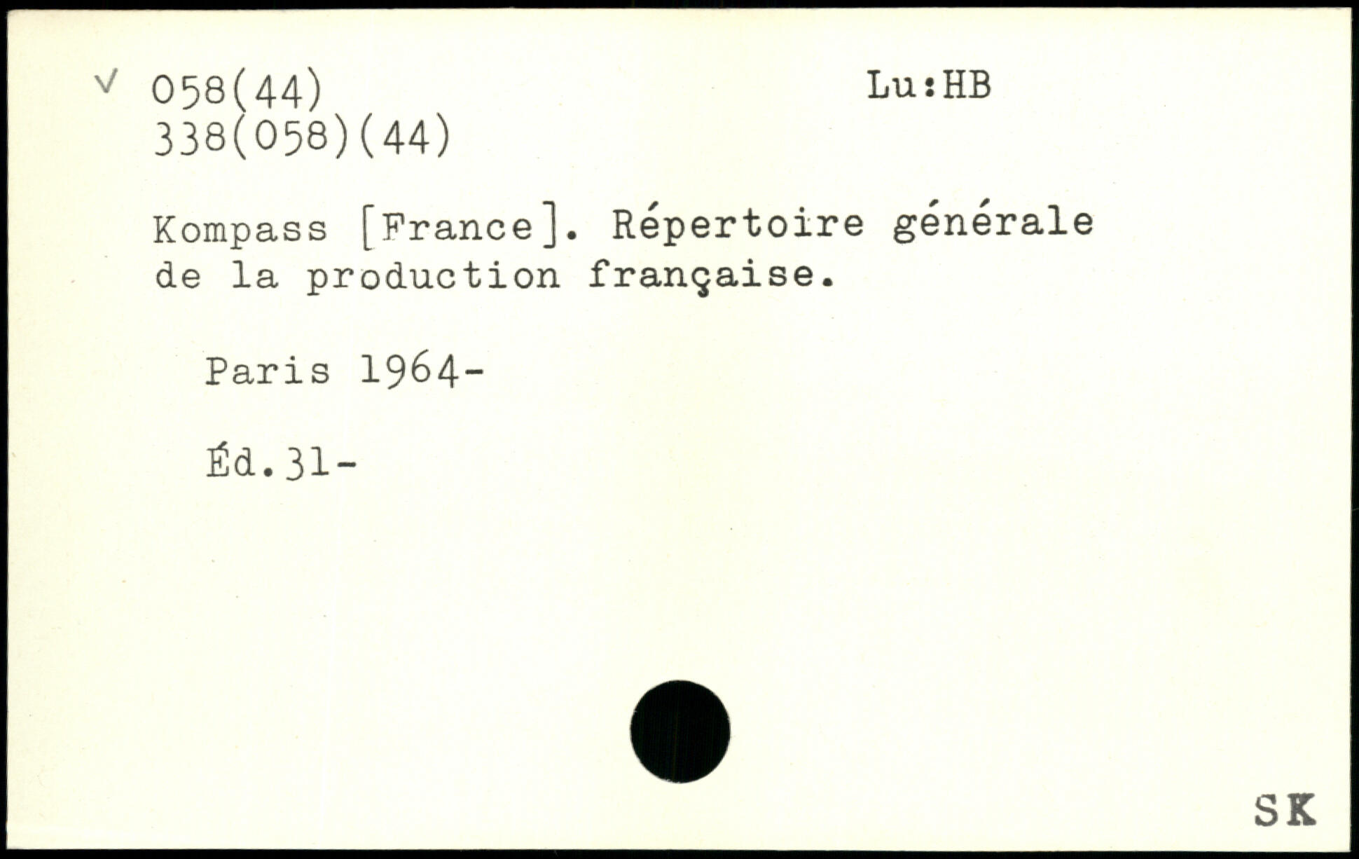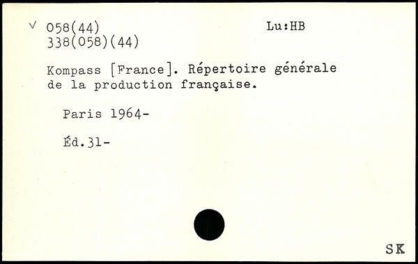 Kompass [Prance]. Répertoire générale de la production française.
