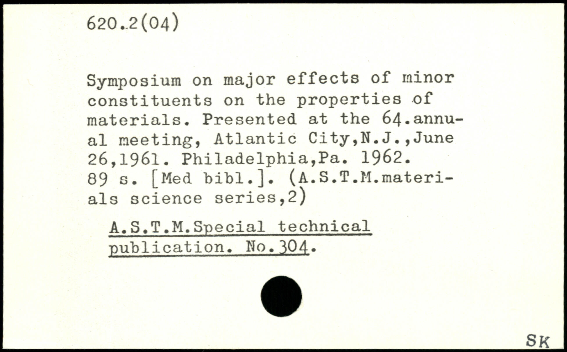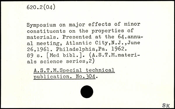 Symposium on major effects of minor constituents on the properties of materials. Presented at the 64.annual meeting, Atlantic City,N.J.,June 26,1961. Philadelphia,Pa. 1962.