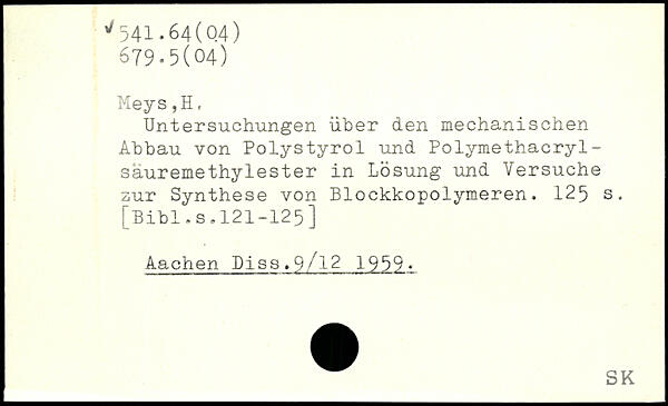 Untersuchungen über den mechanischen Abbau von Polystyrol und Polymethacryl-säuremethylester in Lösung und Versuche zur Synthese von Blockkopolymeren.
