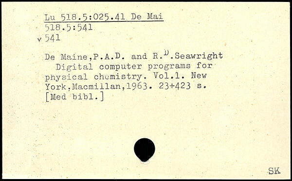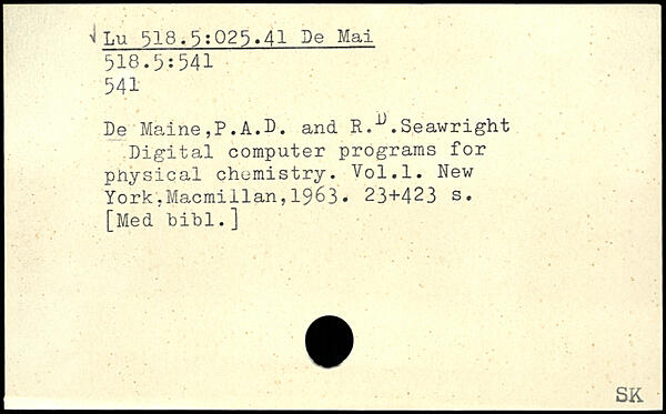 De Maine,P.A.D. and R.^.Seawright Digital computer programs for physical chemistry.