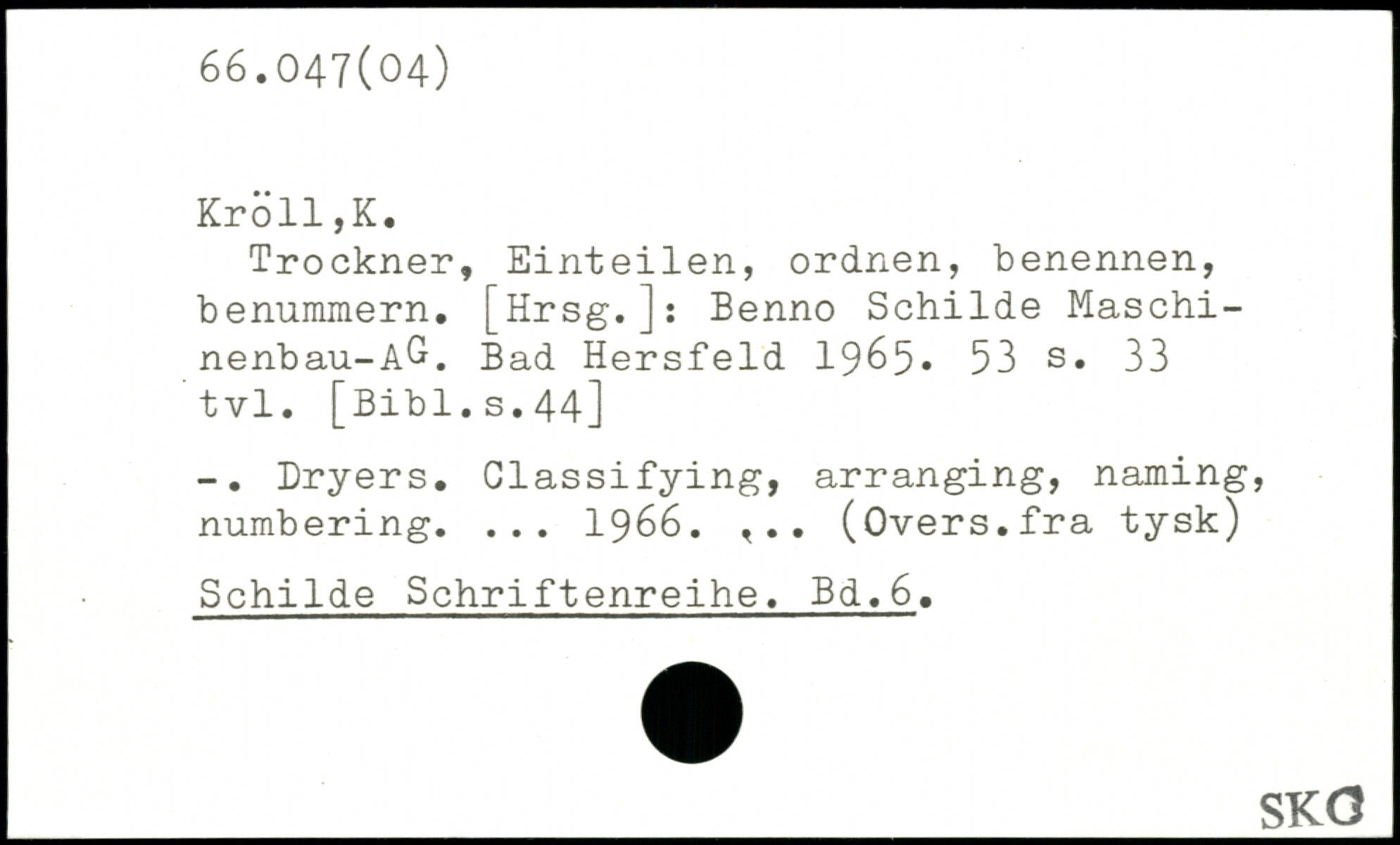 Trockner, Einteilen, ordnen, benennen, benuramern. [Hrsg.]: Benno Schilde Maschinenbau-Aß. Bad Hersfeld 19^5.