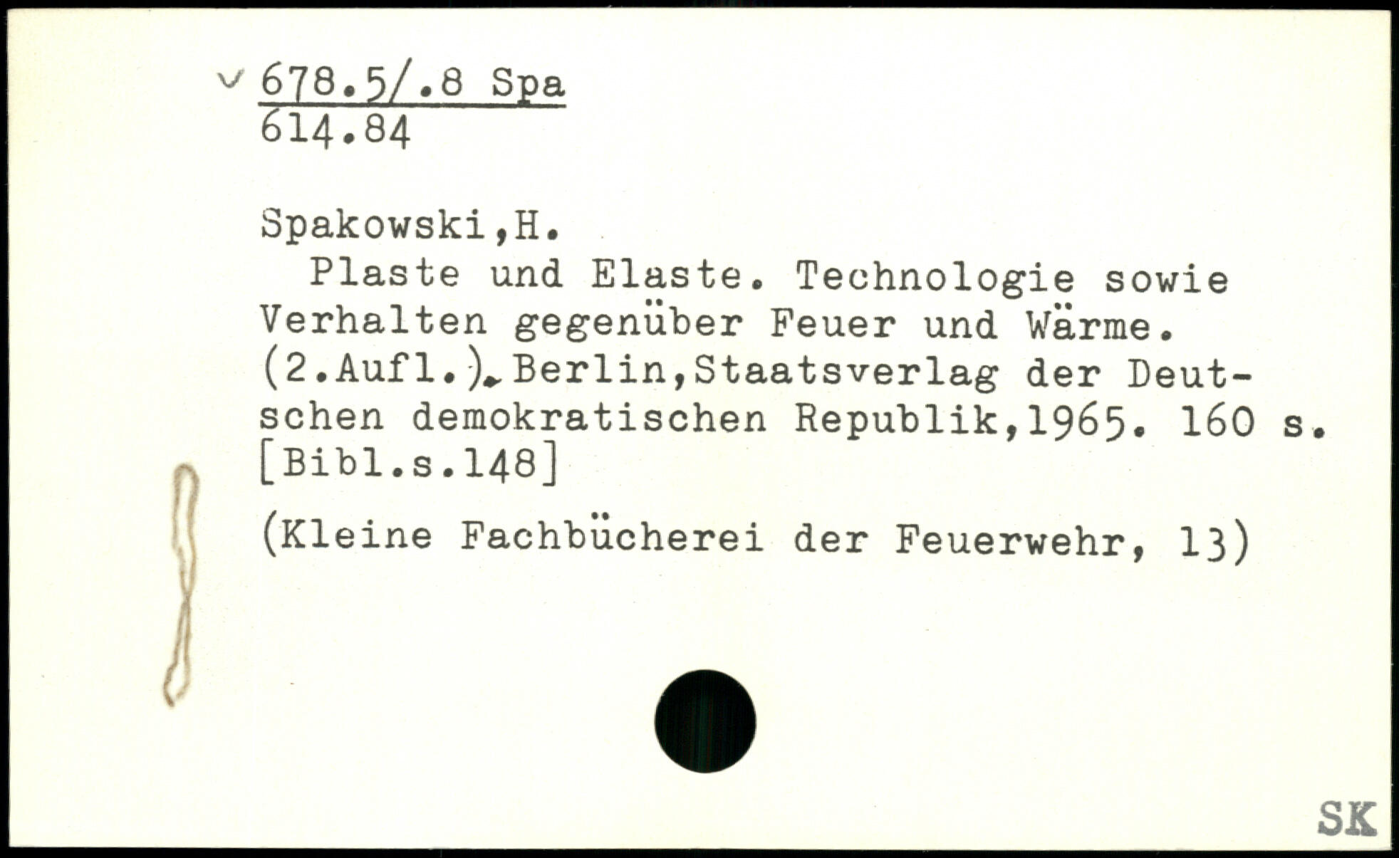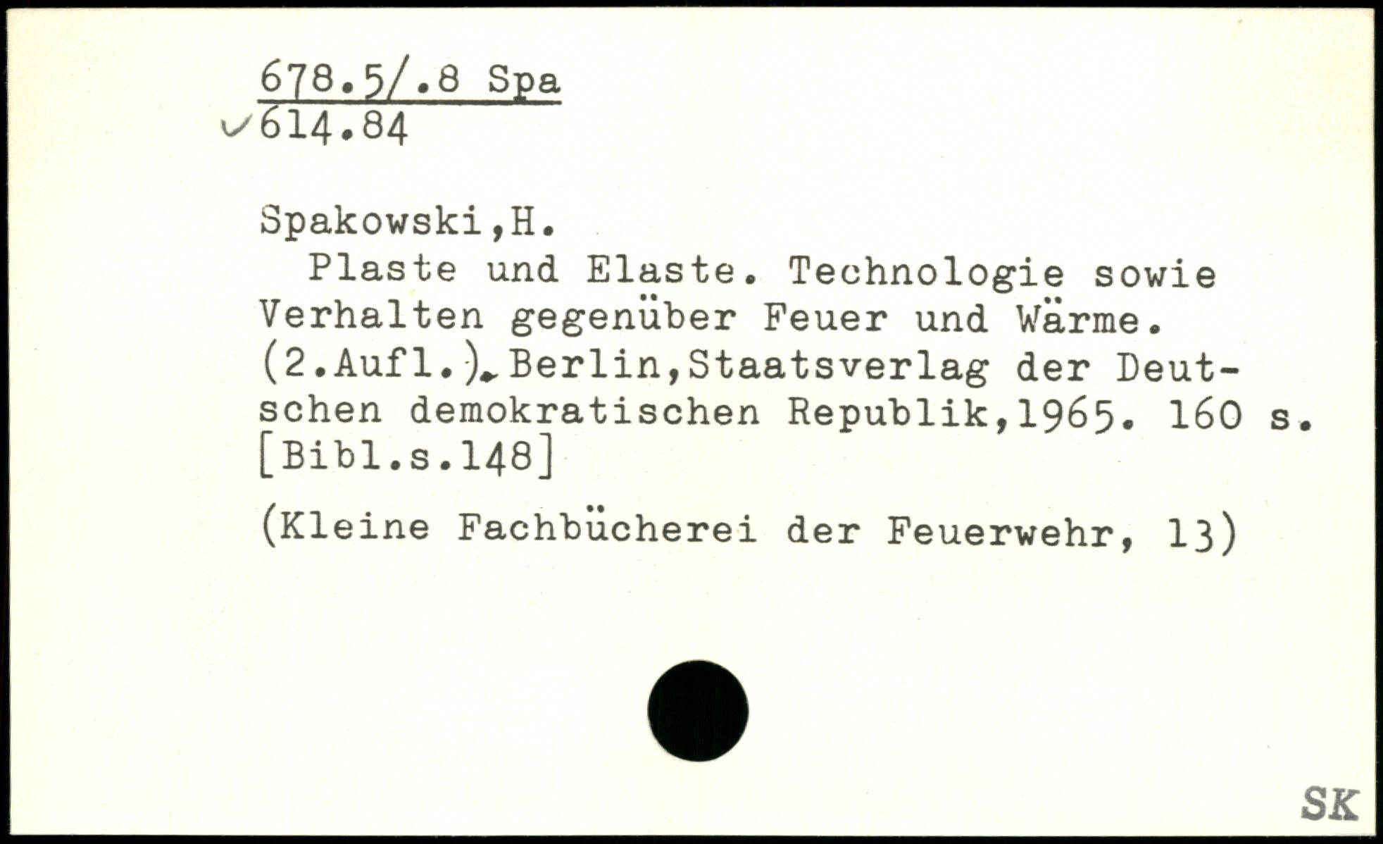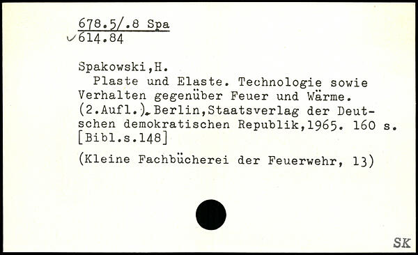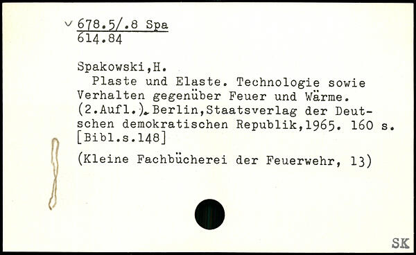Plaste und Elaste. Technologie sowie Verhalten gegenüber Feuer und Wärme. (