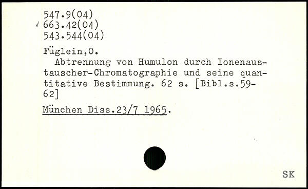 Abtrennung von Humulon durch Ionenaustauscher-Chromatographie und seine quantitative Bestimmung.
