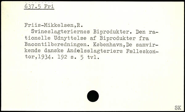 Svineslagteriernes Biprodukter. Ben rationelle Udnyttelse af Biprodukter fra Bacontikberedningen. København,Be samvirkende danske Andelsslagteriers Fælleskori-tor,1934.