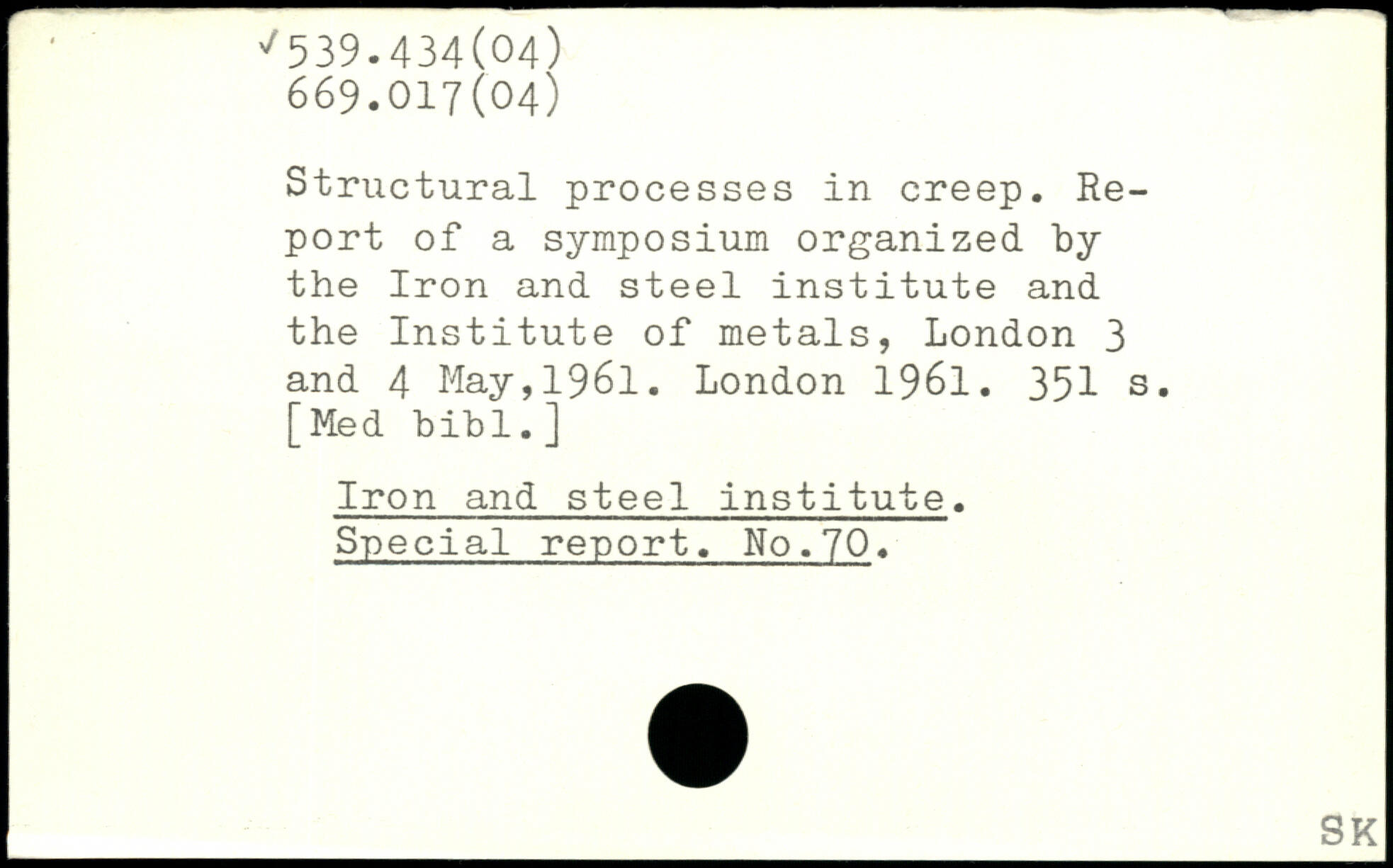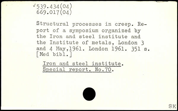 Structural processes in creep. Report of a symposium organized by the Iron and steel institute and the Institute of metals, London 3 and 4 May,1961.