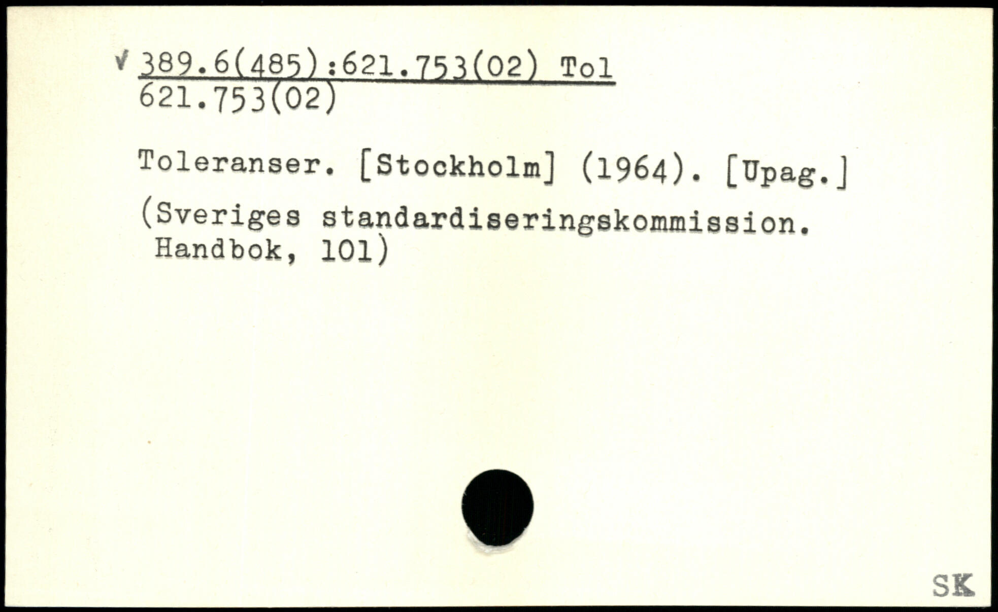 Toleranser. [Stockholm] (1964). [Upag.j (Sveriges standardiseringskommission. Handbok, 10l)