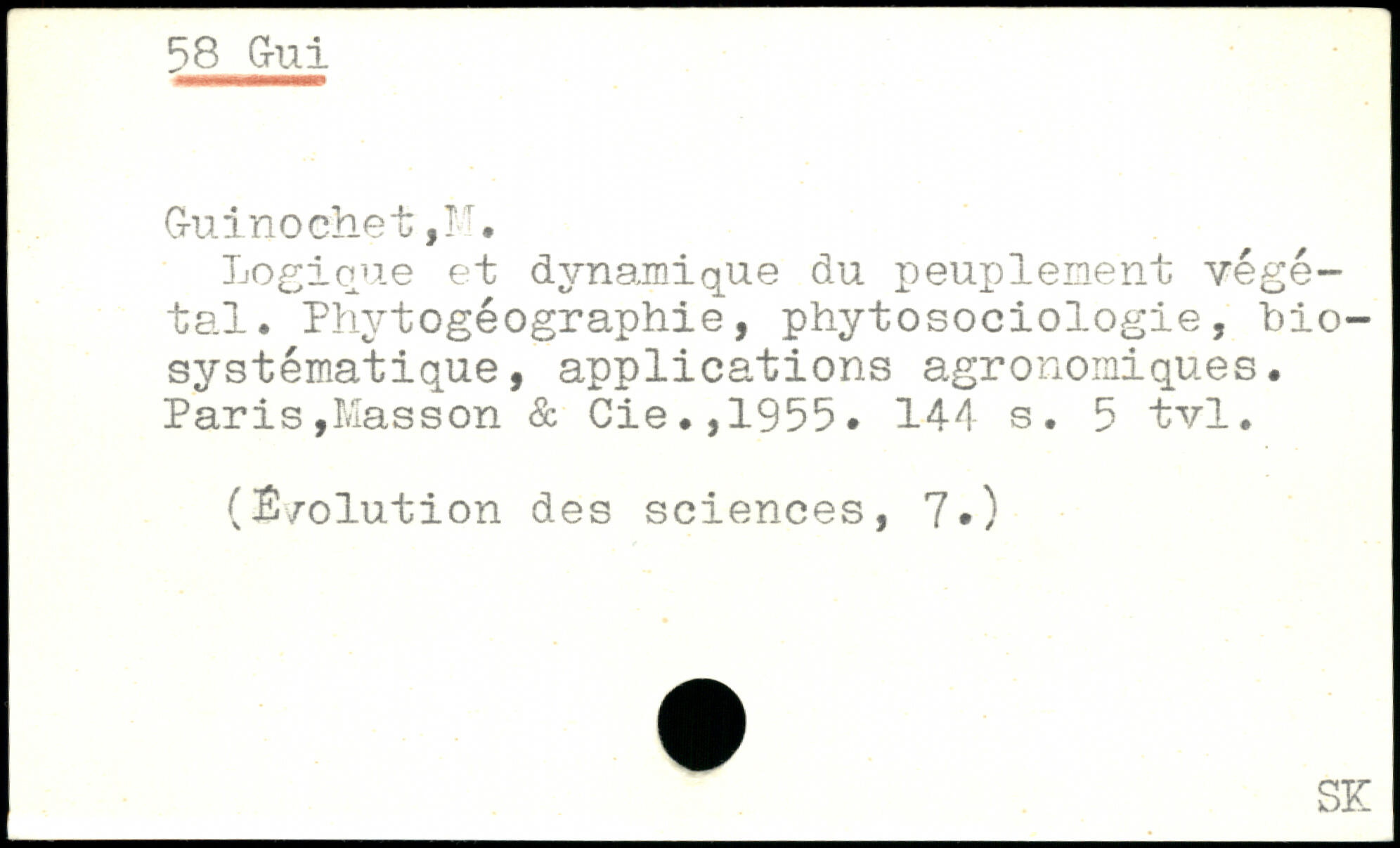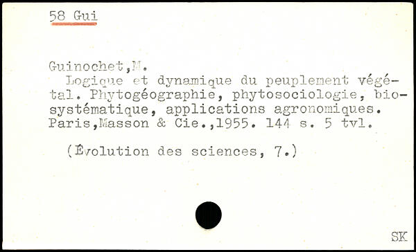Logique et dynamique du peuplement végétal. Phvtogéographie, phytosociologie, bio-systématique, applications agronomiques.
