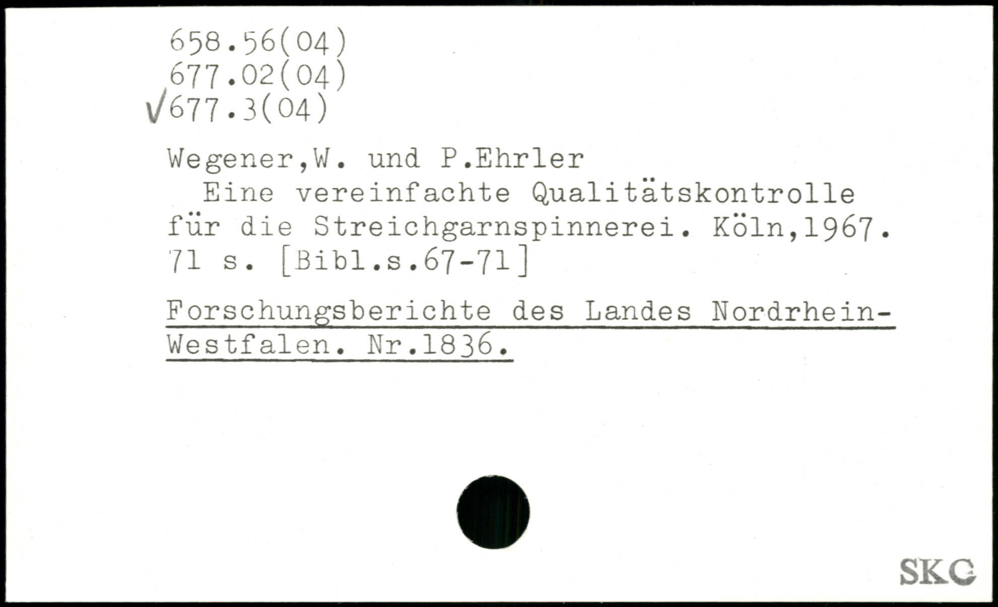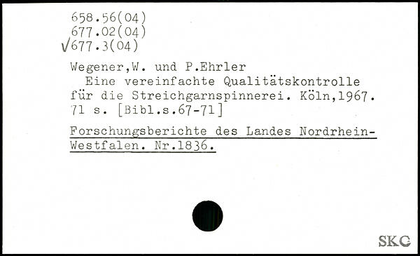 Eine vereinfachte Qualitätskontrolle für die Streichgarnspinnerei. Köln,1967.