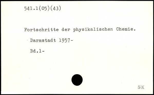 Fortschritte der physikalischen Chemie. Darmstadt 1957“ Bd.l-