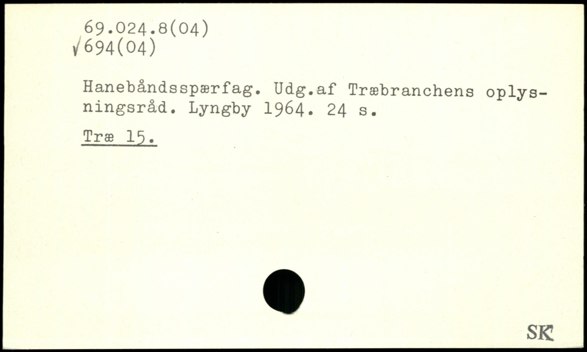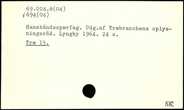 Hanebåndsspærfag. Udg.af Træbranchens oplysningsråd. Lyngby 1964.