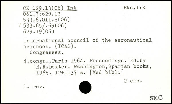 International council of the aeronautical sciences, (ICAS). Congresses. 4. congr.