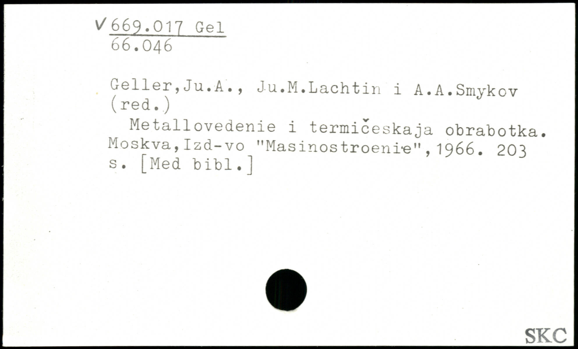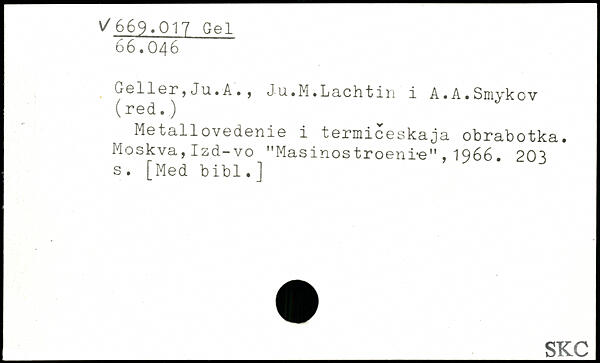Geller,Ju.A. , Ju.M.Lachtin i A.A.Sniykov (red.) Metallovedenie i termiceskaja obrabotka. Moskva, Izd-vo "Masinos troeni-e" , 1966.