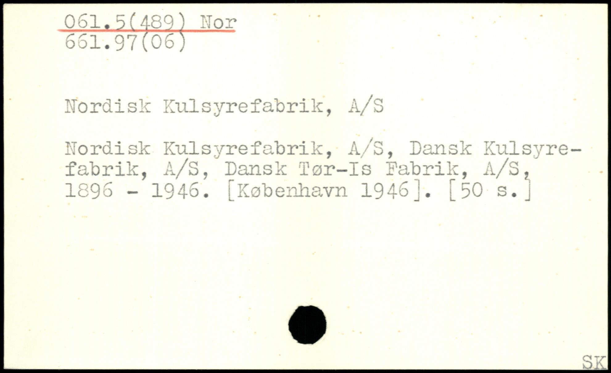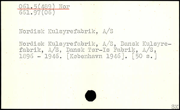 Kordisk Kulsyrefabrik, A/S Nordisk Kulsyrefabrik, A/S, Dansk Kulsyrefabrik, A/S, Dansk Tør-Is Fabrik, A/S, 1896 - 1946. [København 1946J. [50 s.j _X