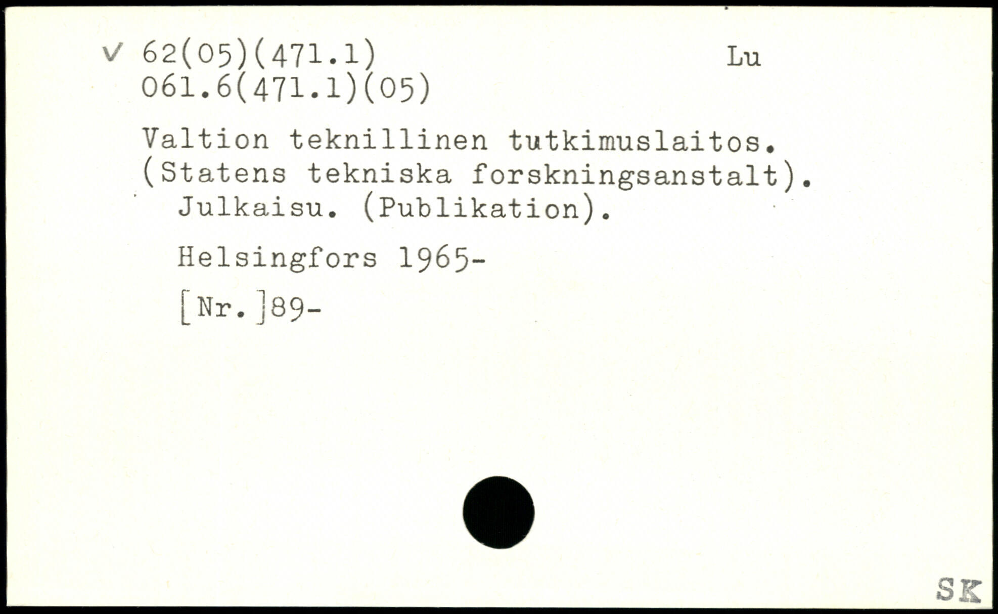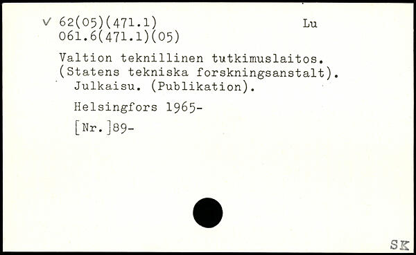 Valtion tekn1111nen tutkimuslaitos. (Statens tekniska forskningsanstalt). Julkaisu. (Publikation).