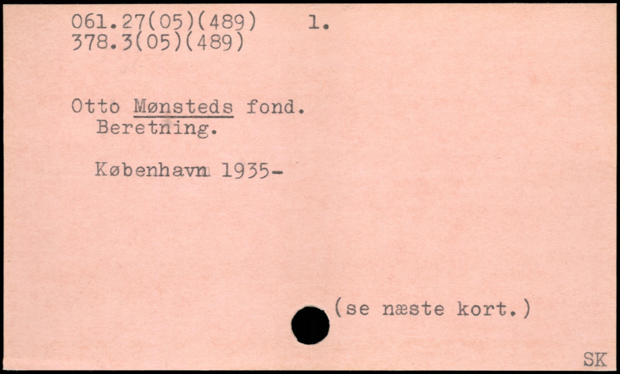 Otto Mønsteds fond. Beretning. København. 1935- ^^(se næste kort.)