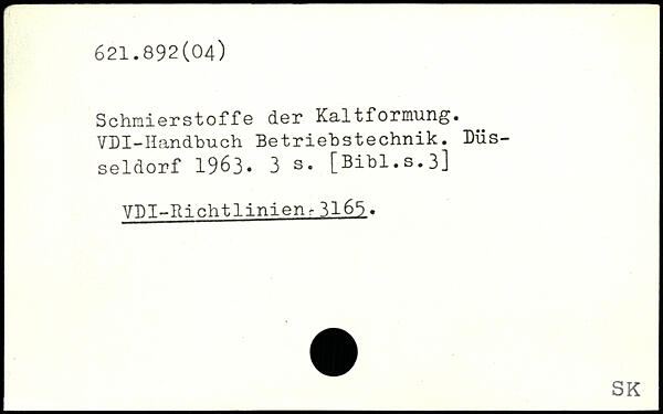 Schmierstoffe der Kaltformung. VDI-Handhuch Betriebstechnik. Düsseldorf 1963