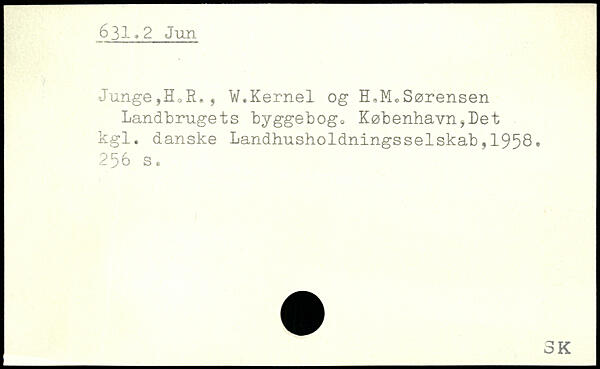 Junge,HoR., W.Kernel og H,MSSørensen Landbrugets byggebog. København,Det kgl. danske Landhusholdningsselskab,1958.