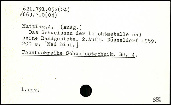 Das Schweissen der Leichtraetalle und seine Randgebiete.
